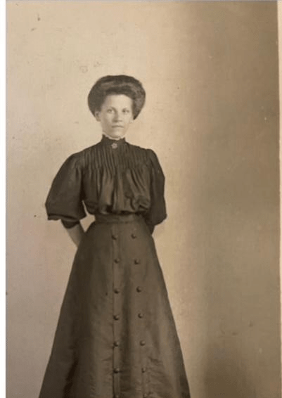 In the attic, I found a collection of antique stereoscope cards. I saved the collection from the dumpster and took it home. Among the cards was a photograph. It is a photo of a woman, dressed in a per-World War I fashion.