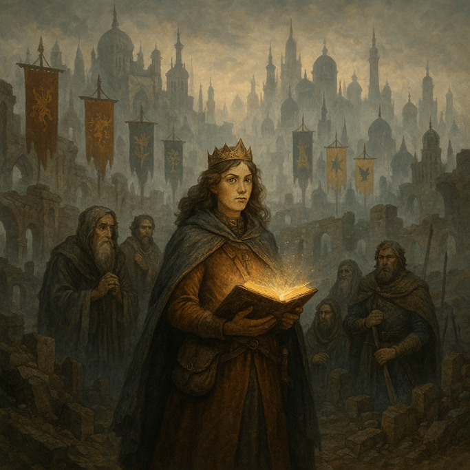 Stories had always clung to her, tenacious as the salt in the seams of her cloak and persistent as the tides that battered the hull. They did not only follow Argonne, they defined her. Every fable—a fragment of myth or memory, gleaned from the old halls or whispered in sickrooms back home, now bundled tightly for the journey—not only promised survival but created its own strange gravity, pulling at her with a weight that could not be ignored. The Confederation, gaunt with war and parched by plague, fastened its last longing for peace on the slim promise of a child’s untested oath, and upon those thin-walled vessels of understanding that legend alone could shape. Argonne herself, just fourteen, crossed the Great Sea with twenty-seven companions. Her only inheritance: stories, hoarded and sealed against cold or doubt, her future interleaved entirely with scrapings from the past, myth, and the brittle hope that some hidden lesson within might prevent disaster.